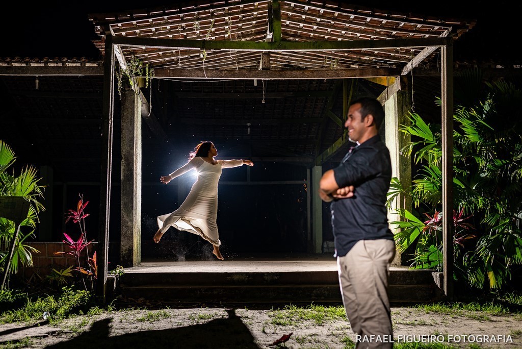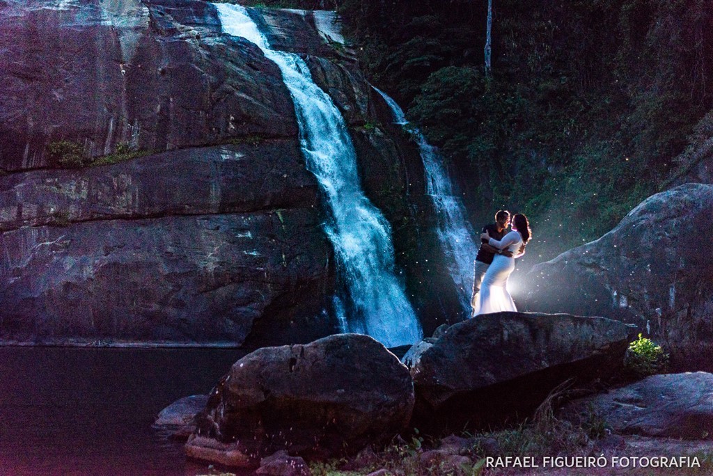 Foi um grande desafio para mim, pois a pedido do casal que queria algumas fotos noturnas na cachoeira, como gosto muito de desafios, mandamos ver nas fotos. Chegamos ao final da tarde no local, aproveitamos o restinho de luz do dia que havia, e logo escureceu e o breu da noite tomou conta, clima de amor e descontração do casal.